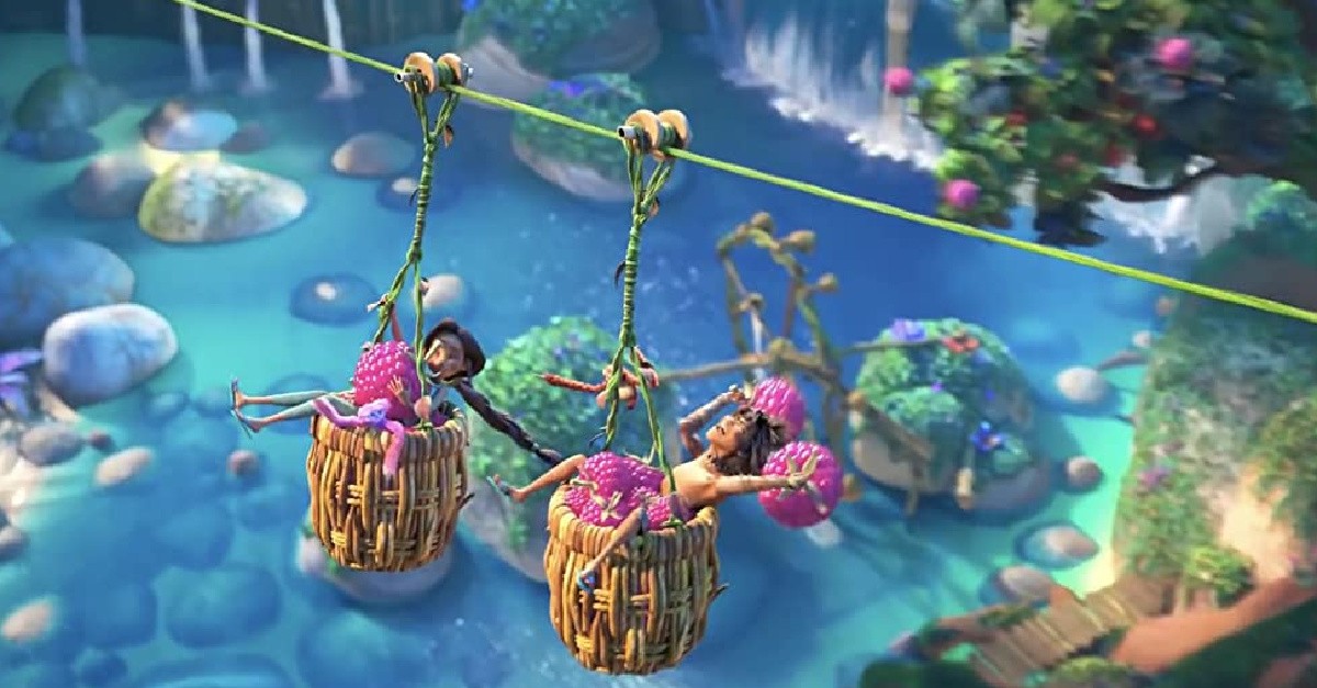 Grug, it seems, has turned over a new leaf by discovering an idyllic paradise with ever-flowing waterfalls, plentiful food and colorful pastures. It’s unlike anything he’s ever seen – and it’s inhabited by another family, the Bettermans. They’re friendly and modern, and they invite the Croods to move in and try a taste of the new world.